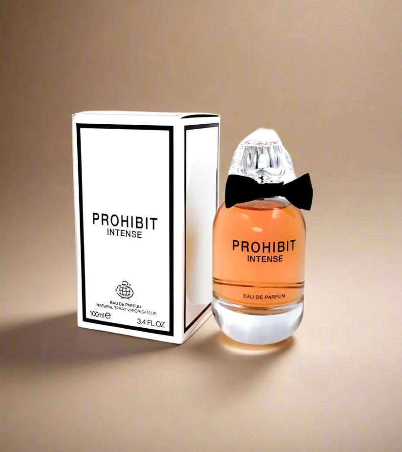Prohibit Intense – Ароматът съчетава „бели“ цветни нотки ( портокалов цвят, жасмин, тубероза) с по- тъмна дървесно- ванилова база. Голям акцент е на контраста между светлина и сенки.
